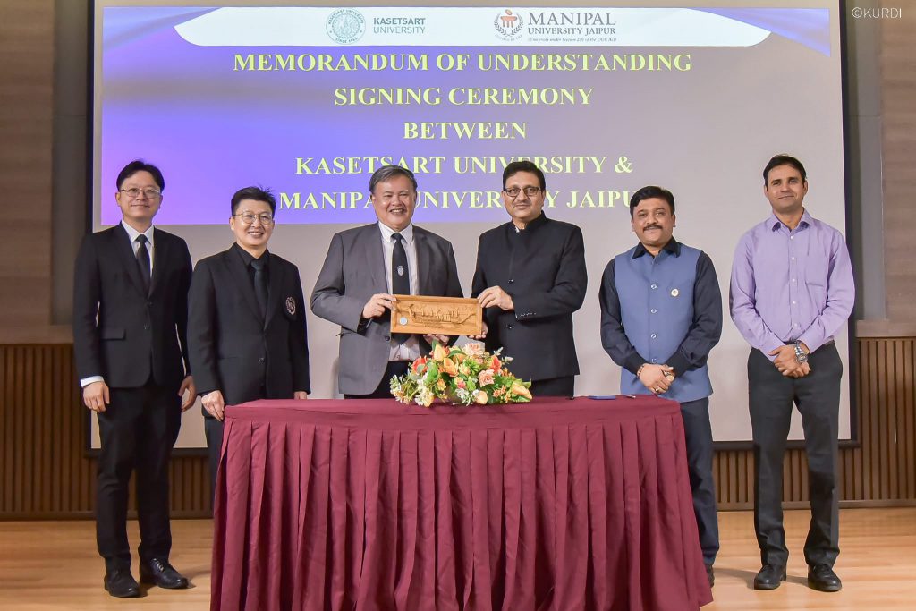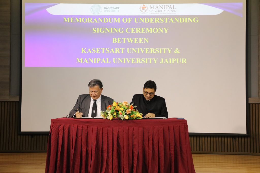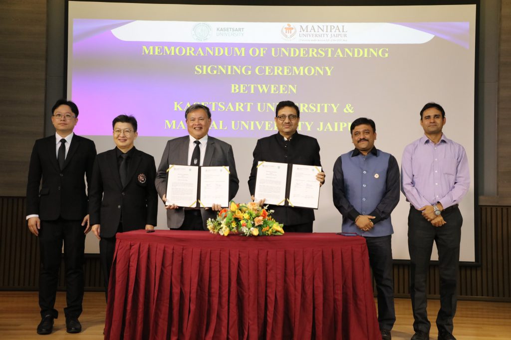 During the ceremony, a Memorandum of Understanding (MOU) was officially signed between Kasetsart University and Manipal University Jaipur to strengthen academic collaboration, joint research initiatives, and student–faculty exchanges. The MOU was signed by Dr. Damrong Sripraram and Prof. Dr. Niti Nipun Sharma, with Prof. Dr. Wanchai Yodsudjai and Prof. Dr. Santosh Patil from MUJ serving as witnesses. The agreement will be in effect for three years, focusing on promoting academic excellence, personnel development, and collaborative research between the two institutions.
