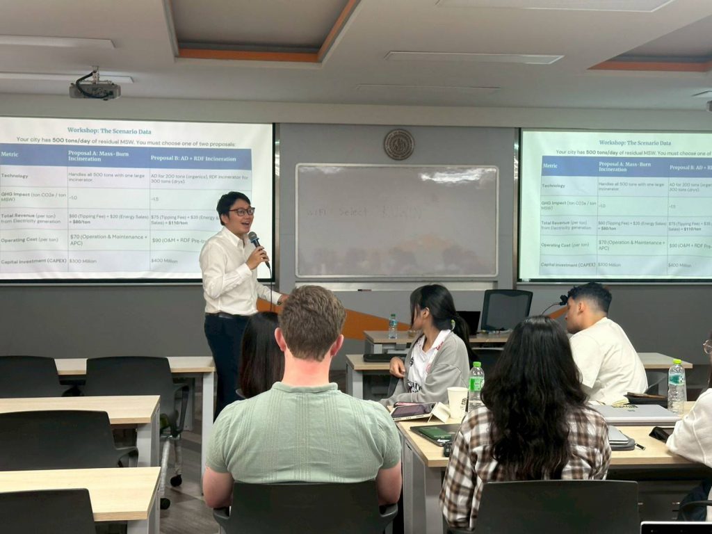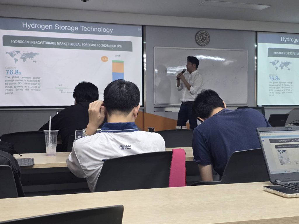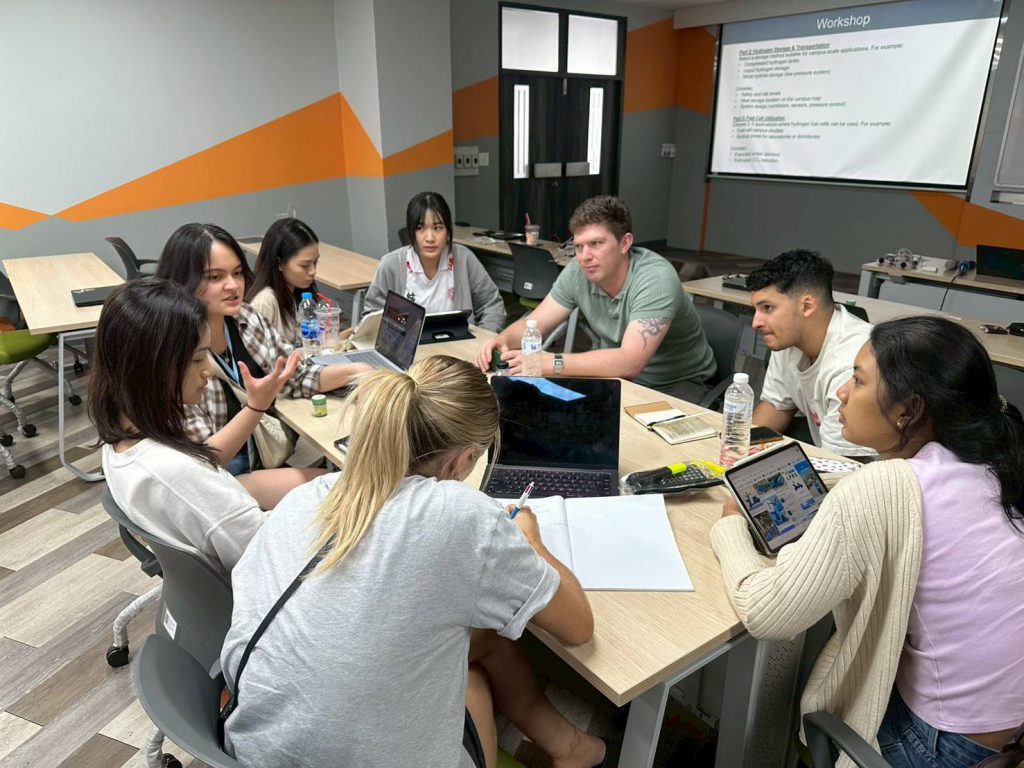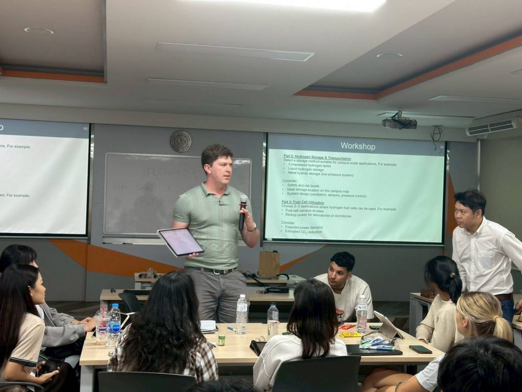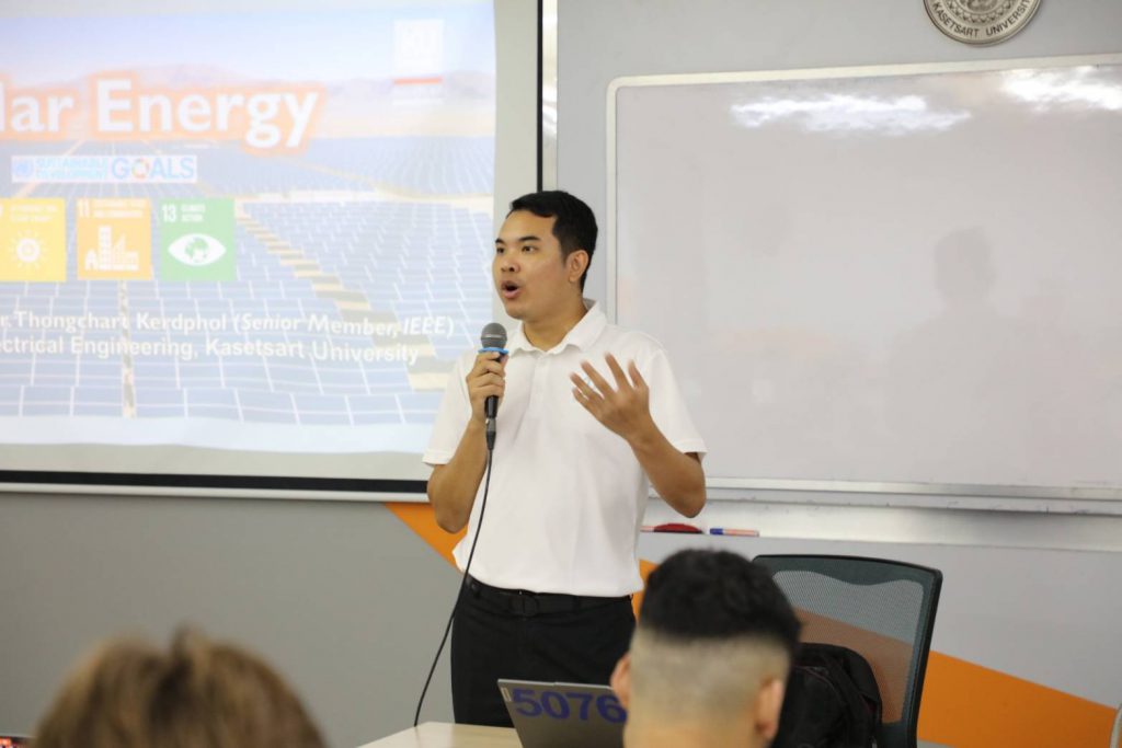 As part of the program, students participated in a series of expert lectures and practical learning activities led by faculty members from the Faculty of Engineering, Kasetsart University. Key topics addressed included Hydrogen Energy by Associate Professor Dr. Gasidit Panomsuwan (Department of Materials Engineering), Solar Energy by Assistant Professor Dr. Thongchart Kerdphol (Department of Electrical Engineering), Hydrology for Energy Systems by Assistant Professor Dr. Donpapop Manee (Department of Water Resources Engineering), and Waste-to-Energy by Dr. Jarudej Asingsamanunt (Department of Environmental Engineering). These sessions provided students with essential technical knowledge related to emerging energy technologies and their future applications.